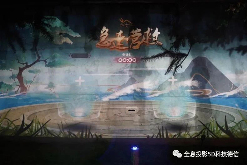 百米看台下,2台8000流明投影在剪力墙上的画面是急速救援的游戏环节,让游客充分体验互动感!