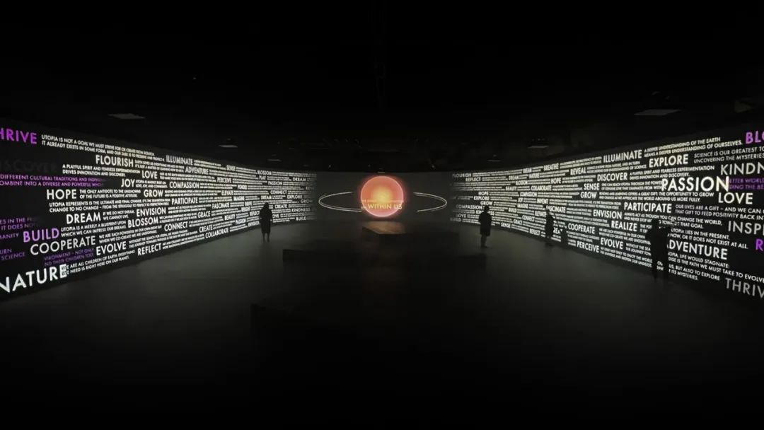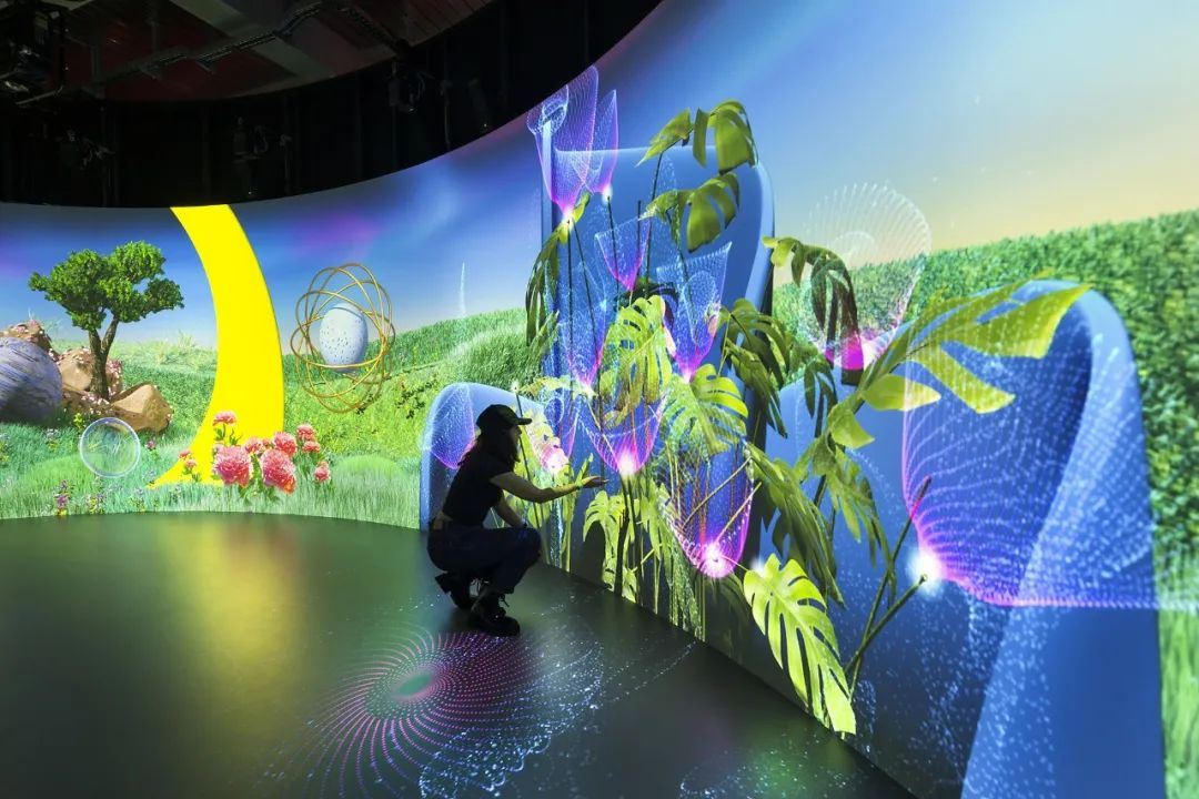 参观者在300°环绕、12英尺高的巨大数字幕布下,探索艺术、科学和自然的交汇处,共同开发充满想象力的“乌托邦花园”。
