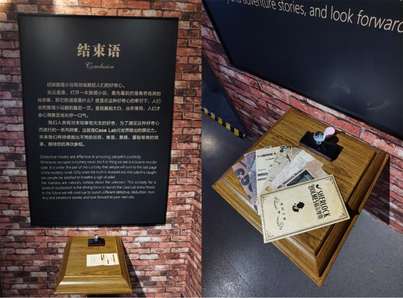 在展览的最后,竟还有一个模拟案发现场来考验当场的每位侦探。这里的案件不属于《福尔摩斯探案集》中的任何篇章,但清晰简单的逻辑让案件的真相大白并不算难事。即便如此,当我们确定凶手,亲手填下“逮捕令”的那一刻,极大地成就感仍是涌上心头。